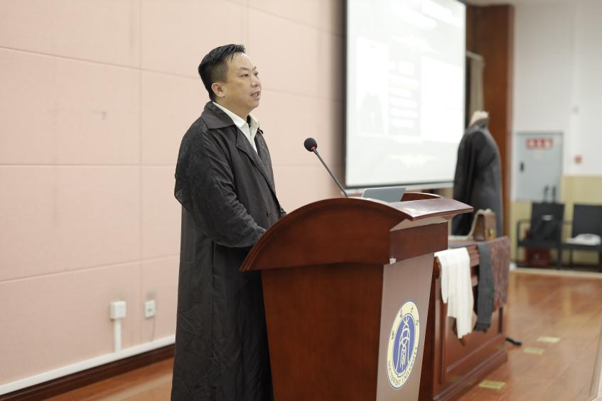 在主题报告环节,黄坤先生深入浅出地探讨了香云纱这一中国传统丝绸面料的悠久历史、精湛工艺与独特魅力,并分享了其在当代设计领域中的创新应用案例,特别是香云纱“女书纹饰”丝绸面料与纳米微囊香型技术的完美融合,令人耳目一新。而路宽先生则巧妙借鉴丝绸文化的古老纺织灵感,探索了丝绸文化基因在当代设计中的转化实践与创新思维,通过分享“中而新”的设计理念案例,深入剖析了设计思维的构建过程,为中式时尚与服饰文化在社会价值与产业发展方面提供了宝贵的“谦山实践”设计思路。