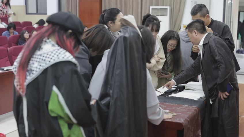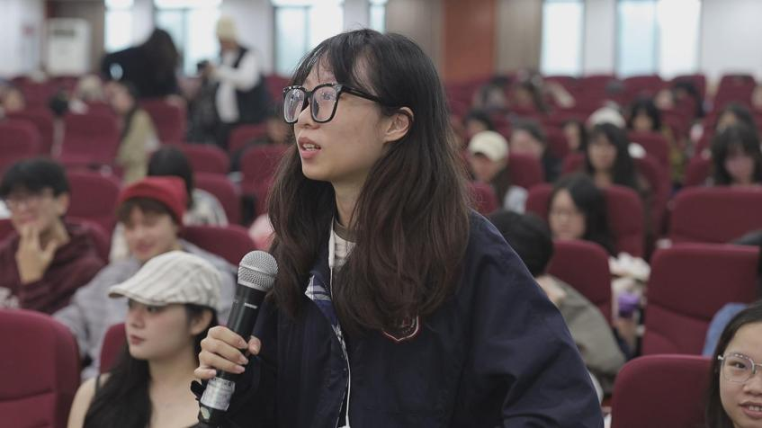 论坛的研讨交流环节氛围热烈,学生们积极向专家提问,就毕业设计丝绸服饰的创新实践、传统服饰文化如何融入市场设计等问题展开了深入探讨。现场互动频繁,激发了丝绸文化与服饰设计的创新思维火花,展现了学生们对丝绸文化的深厚兴趣与创新热情。