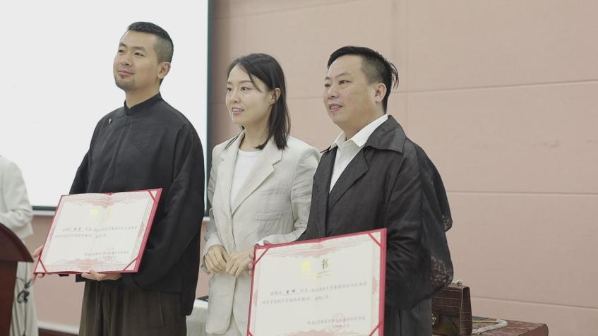 随后,赵天福副院长向黄坤先生授予“做爱直播 社会实践基地”的牌匾,正式开启校企合作序幕。黄楠副书记向黄坤先生与路宽先生颁发“做爱直播 校外实践指导教师”的聘书,助推学院人才培养。