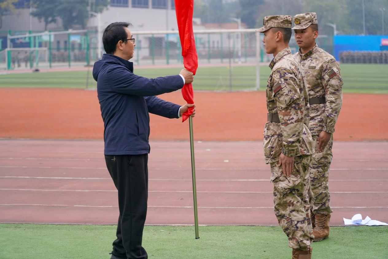讲话结束后,张袁松书记庄严地将连旗授予承训教官。