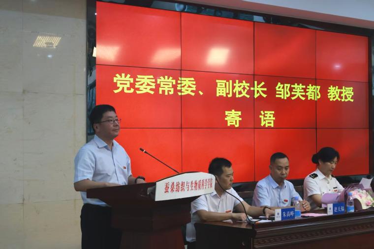 发布时间: 2025-06-28 11:08:47 已阅读:四载韶光,织就云锦天章;今朝骊歌,漫卷星河长巷。2025年6月26日下午,学院2025届学生毕业典礼暨学位授予仪式在学生活动中心106报告厅隆重举行。学校党委常委、副校长邹芙都教授,学院93级蚕学系校友汪琳、中国海关科学技术研究中心动物检疫研究所研究员,学院党政领导、导师代表、班主任代表、辅导员,与2025届毕业生及部分家长齐聚一堂,共同见证这一重要时刻。典礼分毕业典礼和学位授予仪式两个阶段进行,分别由学院党委副书记朱高峰、副院长赵天福主持。