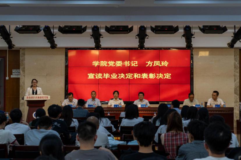 学院党委书记方凤玲宣读了毕业生学位授予决定。学院教授谢洁、张光先、张同华、蓝广芊、王茜龄、周莉、柴春利为2025届学士学位获得者授位。教授们为毕业生拨穗正冠,授予学位证书,并送上诚挚祝福。