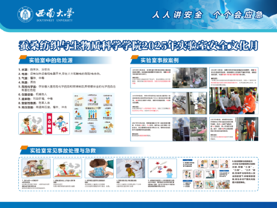 发布时间: 2025-11-28 15:09:01 已阅读:为筑牢校园安全防线,全面提升师生安全素养与应急能力,我院于10月10日至31日精心策划并成功举办了“实验室安全文化月”系列活动。本次活动围绕宣传教育、互动参与、实战演练三大板块展开,内容充实、形式多样,吸引了广大本科生、研究生及教师的积极参与,取得了显著成效。