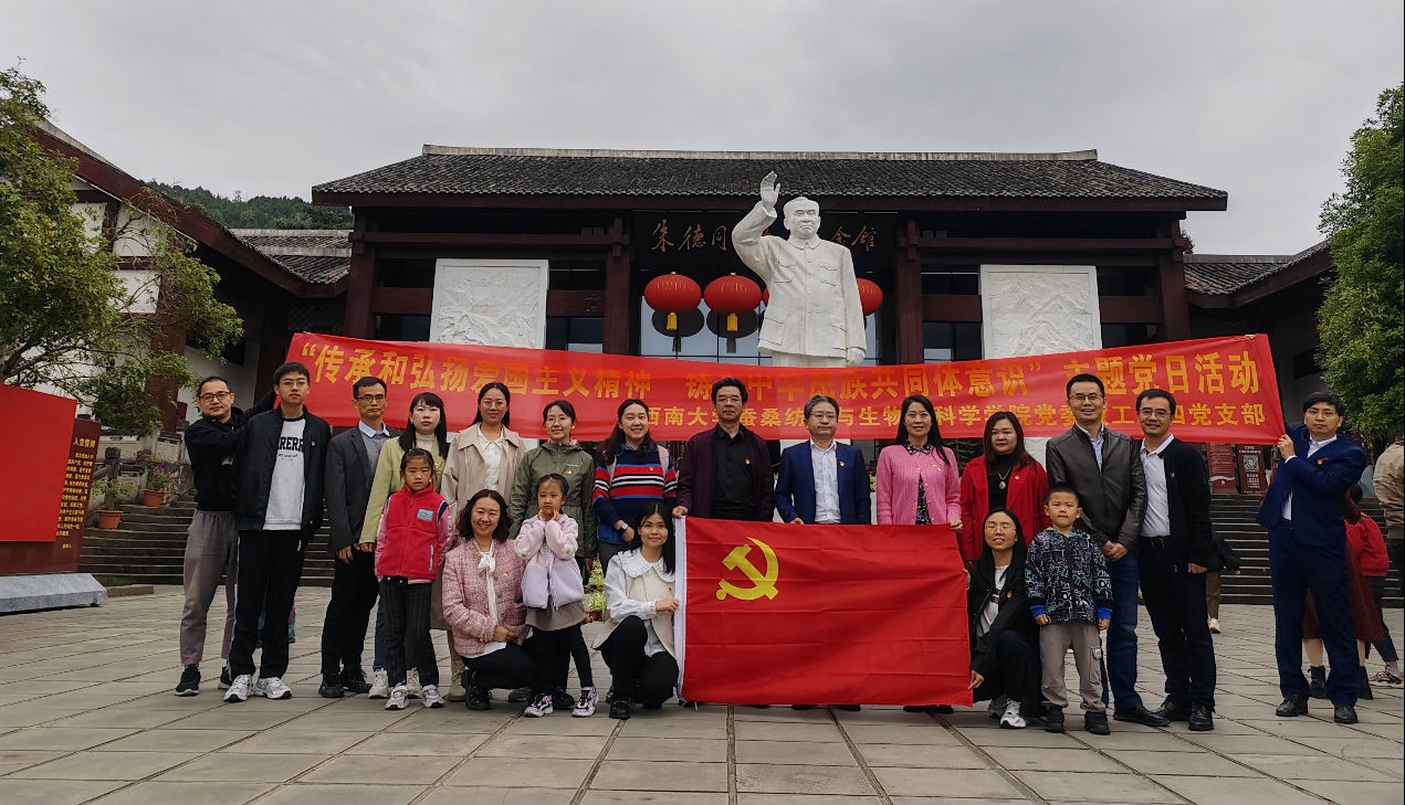 发布时间: 2023-11-15 18:23:18 已阅读:为全面贯彻党的二十大精神,深入开展学习贯彻习近平新时代中国特色社会主义思想主题教育, 2023年11月10-11日,做爱直播 教工第四党支部开展了“传承和弘扬爱国主义精神,铸牢中华民族共同体意识”主题党日活动。此次主题党日活动以瞻仰革命伟人故居与深入蚕桑产业一线相结合,参观了四川省仪陇县马鞍镇朱德同志故居,深入四川安泰茧丝绸集团有限公司、四川布碧丝有机农业科技有限公司进行了调研。支部书记代方银教授、副书记蓝广芊教授带领支部成员参加了上述活动。