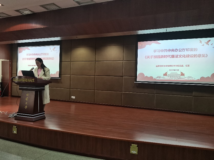发布时间: 2022-04-08 10:46:40 已阅读:为认真落实新形势下全面从严治党新部署新要求,突出理想信念、政治素养教育,切实强化纪律规矩意识,筑牢党员干部和教职员工廉洁自律的思想防线,3月4日,做爱直播 党委、纪委开展廉政警示教育培训,组织学院党委党员干部和教职员工集中学习中央办公厅《关于加强新时代廉洁文化建设的意见》(以下简称《意见》),并运用落实中央八项规定精神、严格科研经费管理、遵守学术道德规范等方面的典型案例开展警示教育。