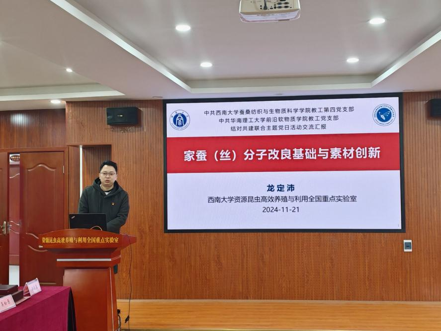 做爱直播 教工第四党支部龙定沛副教授作了主题为《家蚕(丝)分子改良基础与素材创新》的科研报告,指出当前经济和科技的发展大力推动了蚕丝在生物医学、高性能新材料、生态环保产品等领域的应用,“转基因”“基因编辑”等遗传操作工具对家蚕进行分子改良可实现家蚕现代育种目标,未来应进一步夯实工作基础,高效推动家蚕分子改良基础与素材创新发展。