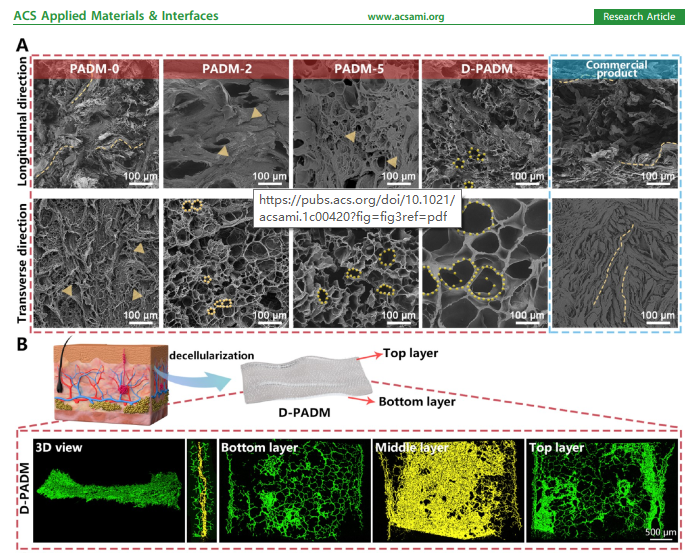 发布时间: 2021-04-24 11:24:07 已阅读:近日,我院Bio-road生物医用材料研发团队在材料领域知名期刊《ACS Applied Materials & Interfaces》(影响因子:8.758)上发表题为“Biogenetic Acellular Dermal Matrix Maintaining Rich Interconnected Microchannels for Accelerated Tissue Amendment”(一种用于加速创面修复的多孔透明猪脱细胞真皮基质敷料)的研究论文(DOI: 10.1021/acsami.1c00420)。该成果报道了一种可加速创面修复的具有多孔结构和良好弹性的透明猪脱细胞真皮基质敷料。
