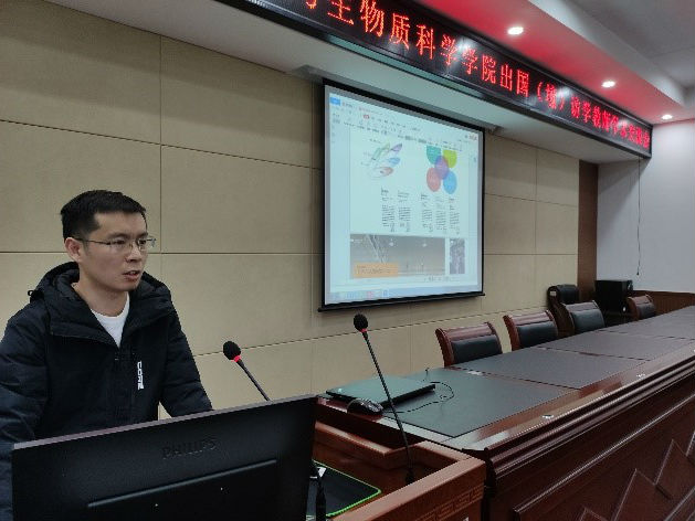 交流会在热烈的掌声中拉开帷幕。胡少营博士以“关于工作效率的服装热工效学机制”为题,就其在日本九州大学访学期间的研究课题作了详细报告。他首先介绍了关于研修主题的学术前沿动态和计划实施完成情况,简述了关于工作效率的服装热工效学机制;还分享了他在外的研修经历、经验和感受,以及九州大学的相关学科情况;在自由讨论阶段,大家就研究主题、留学申报和要求等相关问题展开了热烈的讨论。