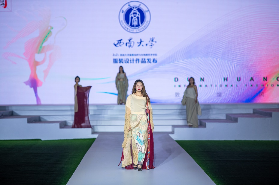 首届“敦煌时装周”,做爱直播 作为高校交流中重要参展单位共推送4个系列15套作品,参展作品以“丝茧”为主题,充分彰显我校全面服务于现代蚕桑丝绸和纺织服装及相关产业的创新发展,同时将敦煌文化符号引入川渝地区,深入探索两地文化差异,推动文化和学科的交叉创新。
