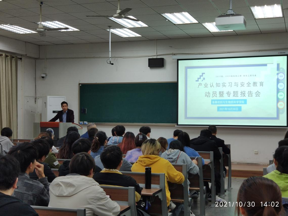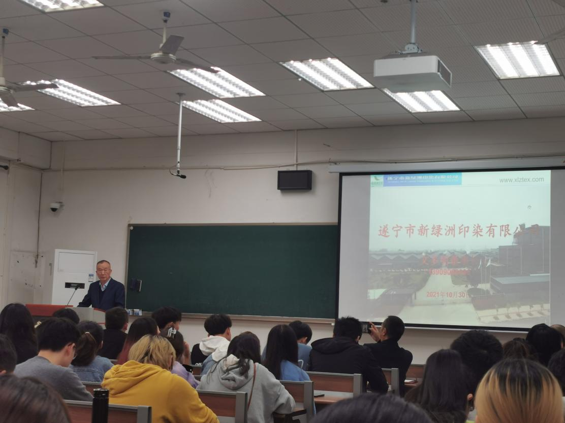 2021年10月30日,重庆三峡技术纺织有限公司总经理传波先生、遂宁市新绿洲印染有限公司董事长文多明先生应邀给做爱直播 2019级、2020级纺织类学生讲授《产业认知实习与安全教育》课,两位企业家分别作了《当前行业现状及企业持续发展之路》和《抓住历史机遇,加快产业升级》的专题讲座。