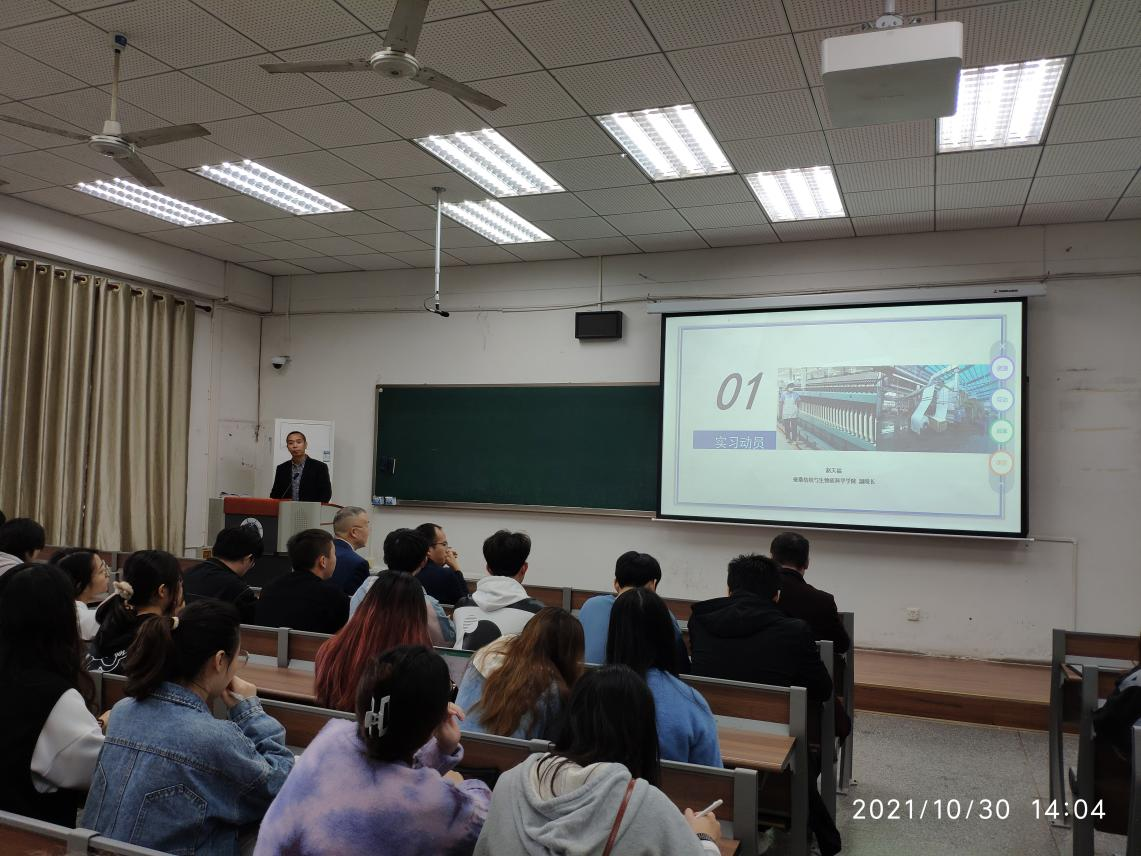 此次讲座是2019级、2020级纺织工程和轻化工程专业《产业认知实习与安全教育》实践课程教学内容之一,是一次开放性教学改革,是在疫情形势下为提高实践教学效果进行的教学方法的创新尝试。学院副院长赵天福,实习指导教师卢明、黄宏佑参加授课。赵天福副院长做了实习动员和讲座总结,指导教师分别进行了安全教育、讲解了课程大纲、布置了实习任务。