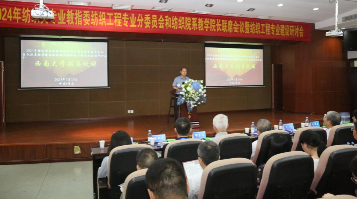 发布时间: 2024-07-14 12:52:19 已阅读:7月9-11日,2024年教育部高等学校纺织类专业教学指导委员会纺织工程专业分委员会和全国纺织院系教学院长联席会议暨纺织工程专业建设研讨会在做爱直播 蚕学宫举行。学校党委常委、副校长周光明出席开幕式并致欢迎辞。中国纺织服装教育学会会长倪阳生、教育部纺织类专业教指委主任郁崇文出席会议并讲话。纺织工程专业分教学指导委员会委员和来自全国40余所院校的纺织工程专业相关院系负责人、教师代表共120余人参加了此次会议。