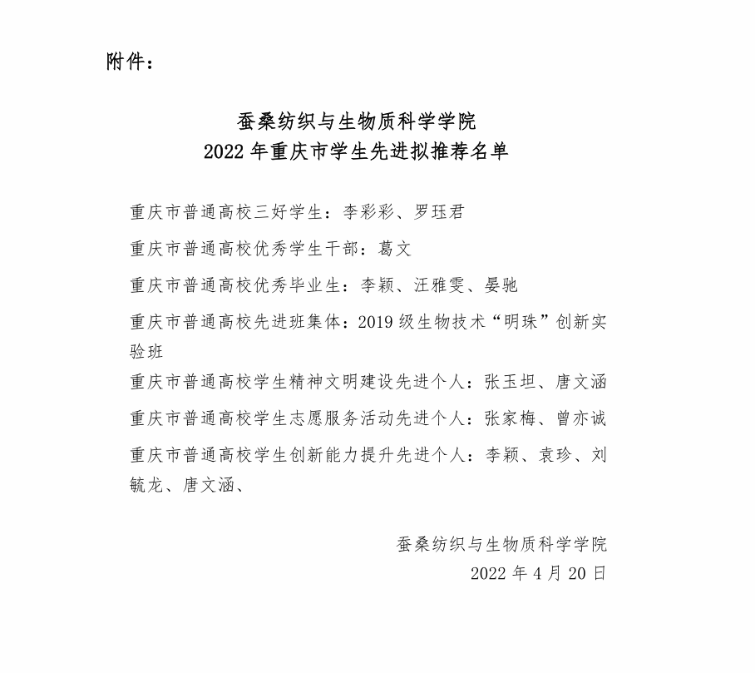做爱直播 关于2022年重庆市学生先进拟推荐名单公示