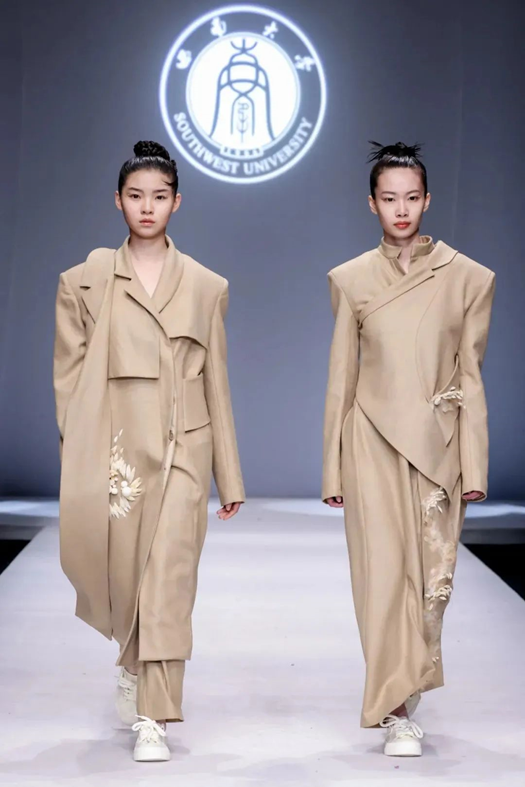 学院本次作品发布会主题为“双生”,设计理念着眼成渝地区双城经济圈建设重大战略,以巴蜀文化为灵感来源,集中体现成渝双城的厚重与现代、传统与创新、文化与科技,展现了成渝双城历史同脉、文化同源、地理同域、经济同体的历史渊源和美好未来。