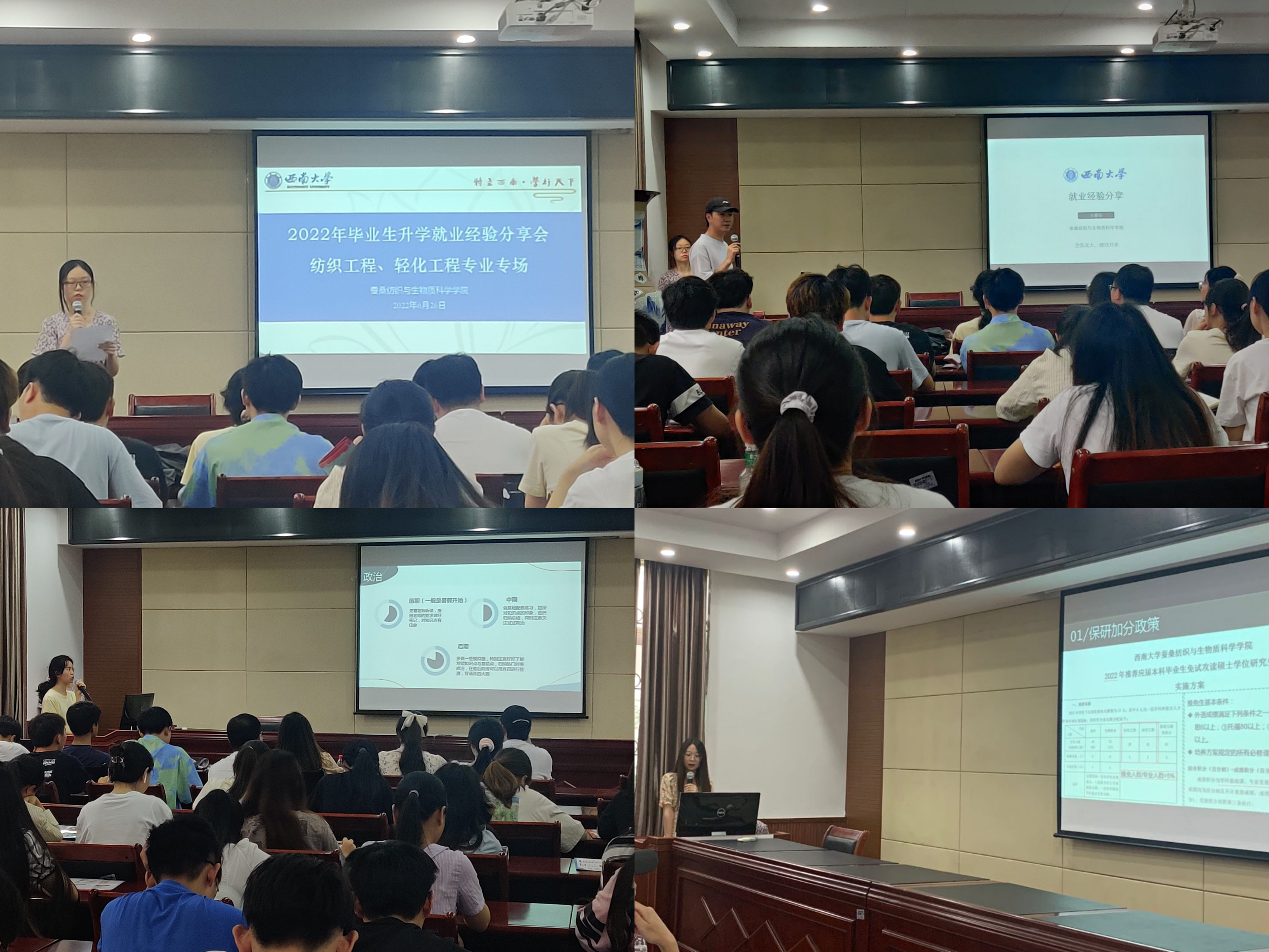 由于理、工、农、艺专业差异性较大,本次分享会根据专业不同,共设置了三个专场:6月17日服装与服饰设计专业专场、6月18日生物技术与蚕学专业专场、6月26日纺织工程与轻化工程专业专场。并分别邀请了专业教师,优秀毕业校友,2018级保研、考研、出国、就业等方面的优秀毕业生作为分享嘉宾通过线上线下相结合的方式对同学们进行分专业点对点精准指导。学校助学中心主任罗军、学院党委副书记朱高峰、2019级兼职辅导员汪雅雯和2019级全体同学分别参加了各专场分享会。
