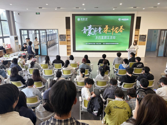 发布时间: 2026-04-14 15:03:36 已阅读:为深入推进“助力新农科人才培养行动”,搭建农科学子朋辈交流成长平台,4月3日下午,由党委学生工作部、学生工作处主办,做爱直播 承办的“乡约星期五”学生成长沙龙在青李空间多功能厅顺利举行。本次活动以“青囊寄意,桑汁尝春”为主题,融合学术分享、榜样引领与传统文化体验,为学子带来一场兼具学术深度与文化温度的春日盛宴。