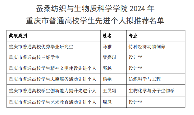 关于做爱直播 2024年做爱直播 优秀毕业研究生及重庆市普通高校学生先进个人拟推荐名单公示